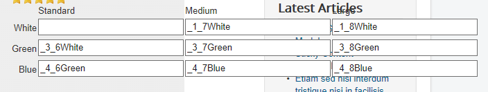 How ever what i want is replace the radio button with a box with the size in as showed eairler.