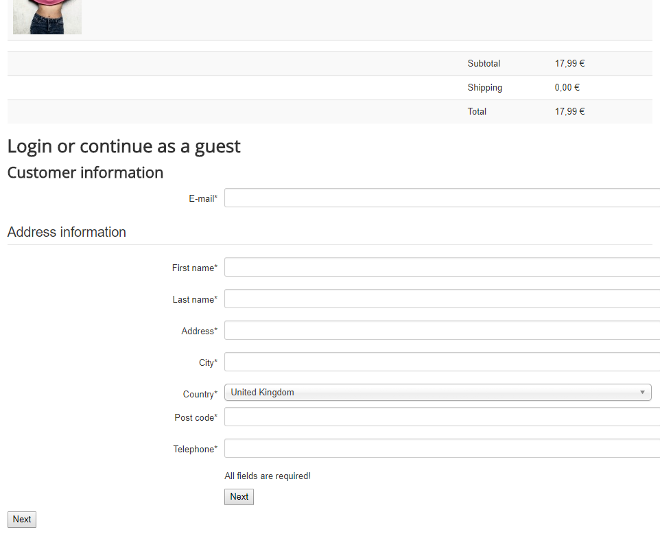 After entering email and address information, pressing button next it will go to next step but if country select box is modified it wont go to next step instead it saves email and address information and shows change guest information button.
