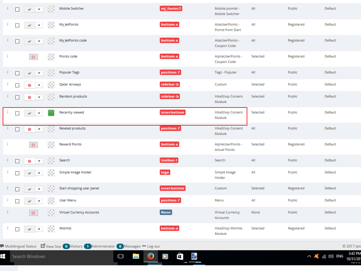 the recently viewed module is properly published. I yet choose the options "Hide when empty" , yet even when empty it shows the title "recently viewed products". So with or without viewed products the module shows.