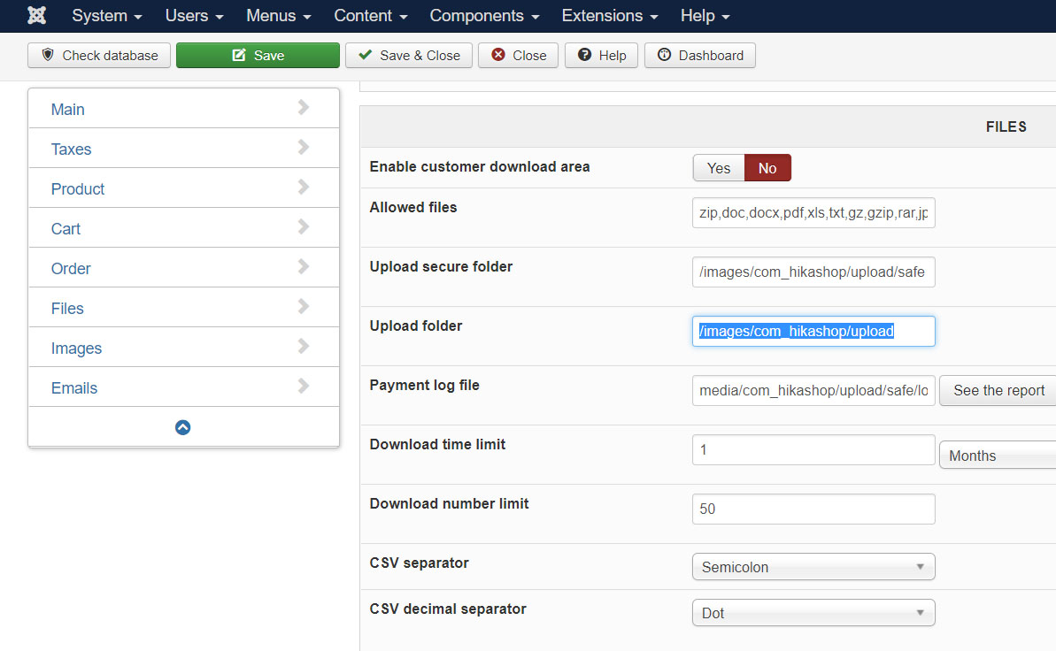 So when you change the folder in the HikaShop configuration, it's up to you to move the files from the old folder to the new one via FTP or your cpanel or the SSH of your server.