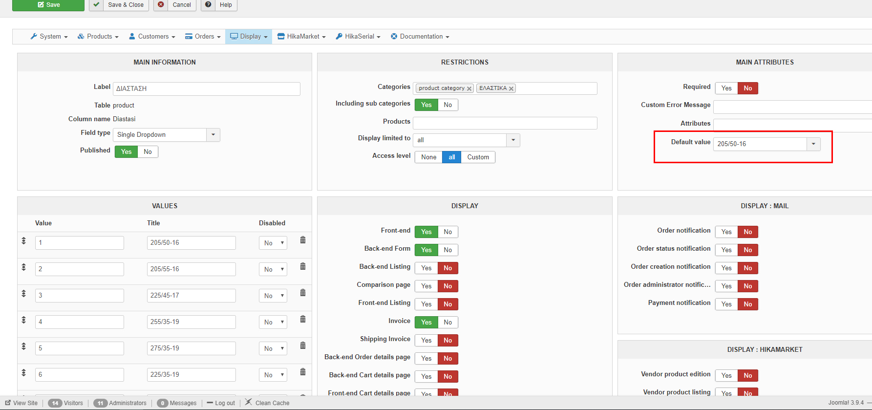 Values names are numbers (1,2,3 etc), the problem is that if a product has a specific value selected (for example value 5), that correct value shows up in the frontend and in the database table, but if i enter the backend of that product, the value that seems to be selected is the default value of that field.