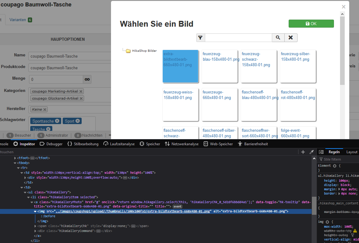 Again: Please look at the screenshots! I can't find out where the url is constructed. I think that there is the problem. The paths in configuration are correct. The images in shop frontend are shown. But the images in the popup when editing (adding or changing images) are not shown. And when I have a lot of images and I can see only part of the names of them, it is too hard to find some pics without to see it real.