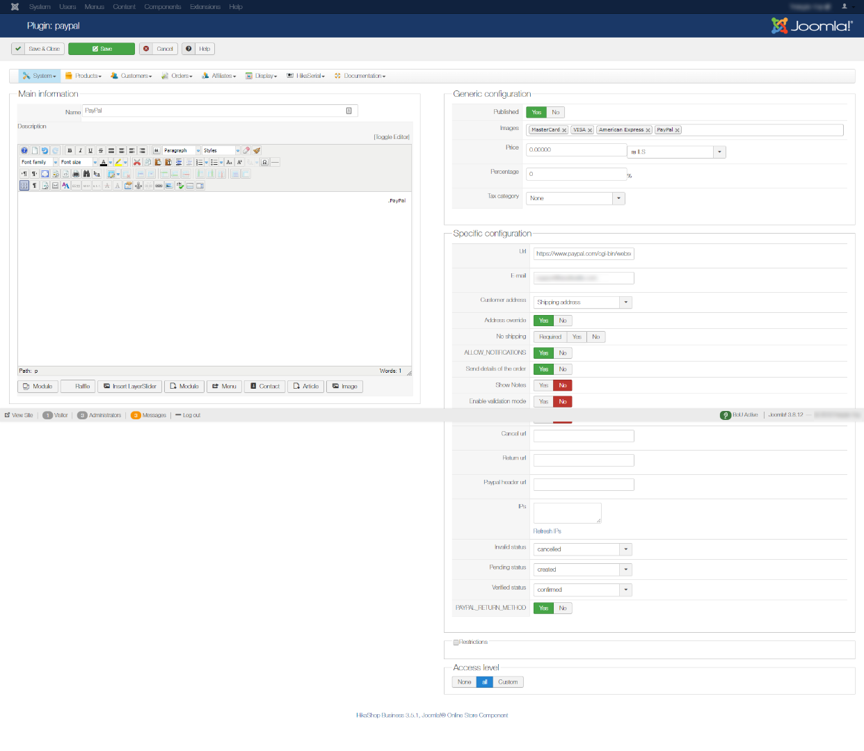 The plugin we use is "Hikashop Paypal Payment Plugin" and I've attached a screenshot of the settings.