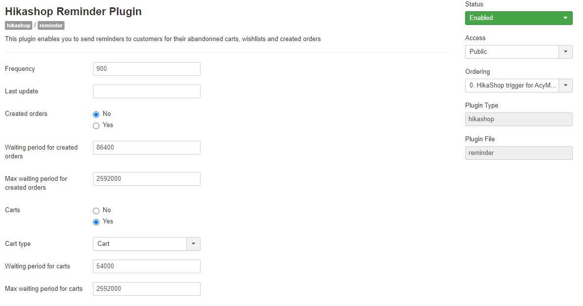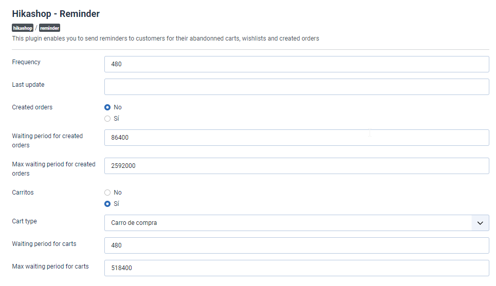 Now, it still seems strange that no cart / order are being found to be reminded. I suppose it has something to do with the settings not properly saving because you configured the plugin to send an email when a cart is more than 15 minutes old while no orders having been made since then. And thus, that should definitely trigger some reminder emails as I can see you have carts fitting that situation.
