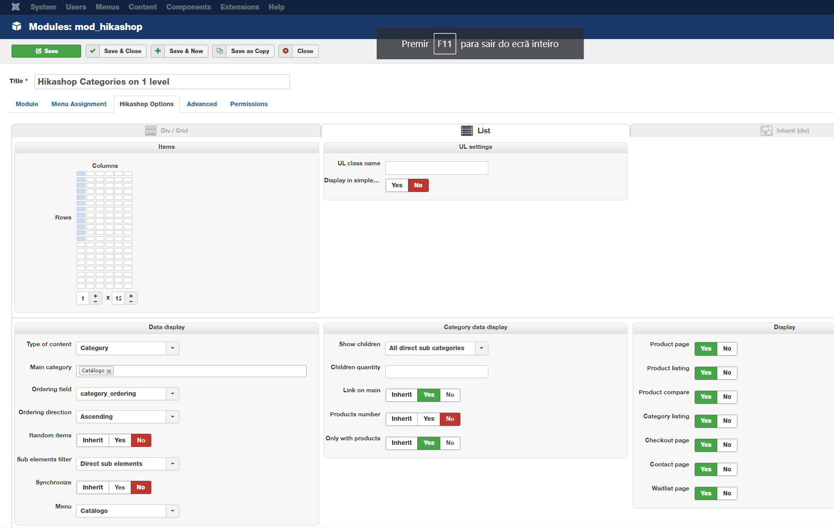 Then, go in the Modules manager of Joomla. and enable the "Categories on 2 levels" HikaShop content module