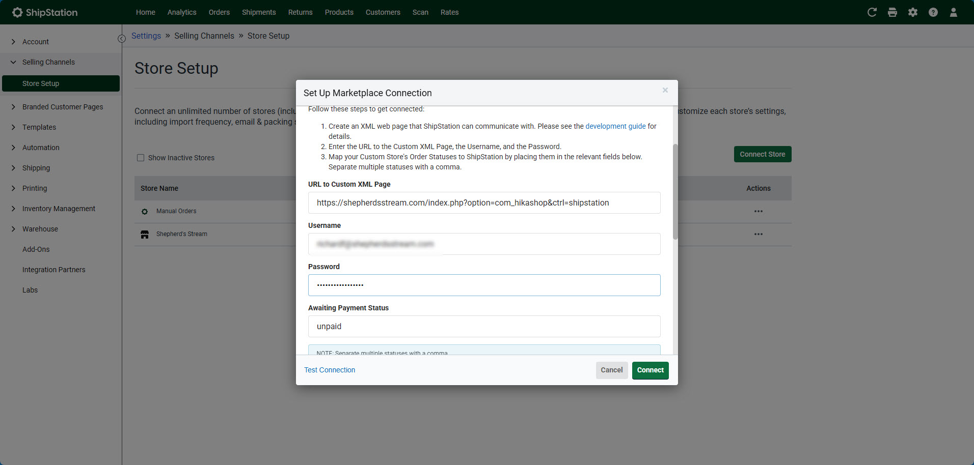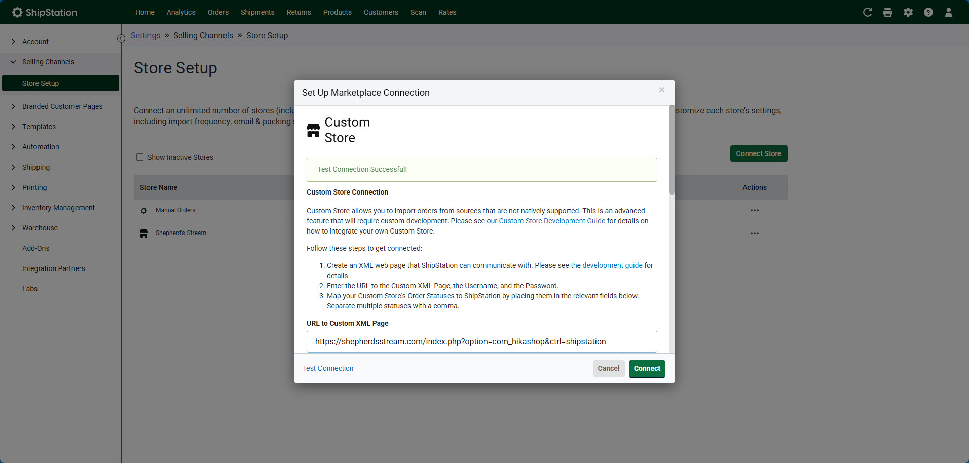 Also, ShipStation will connect to the plugin URL periodically to retreive the orders data, but there might be some delay. Up to a few hours.