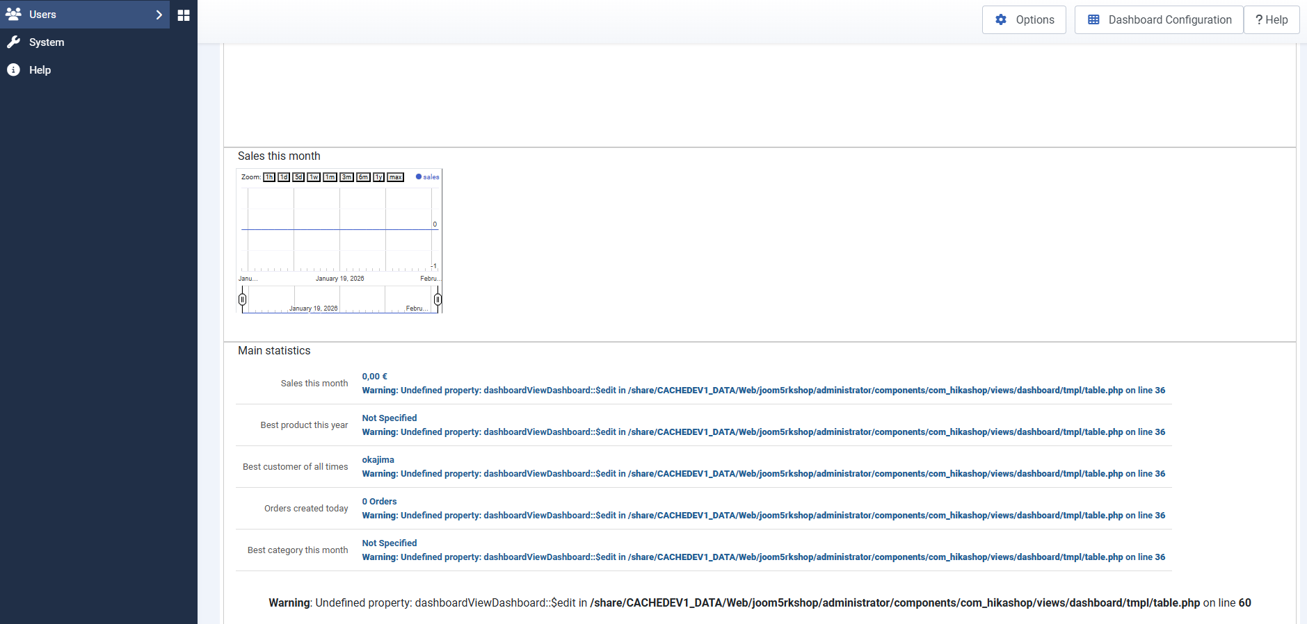 Undefined property on the dashboard