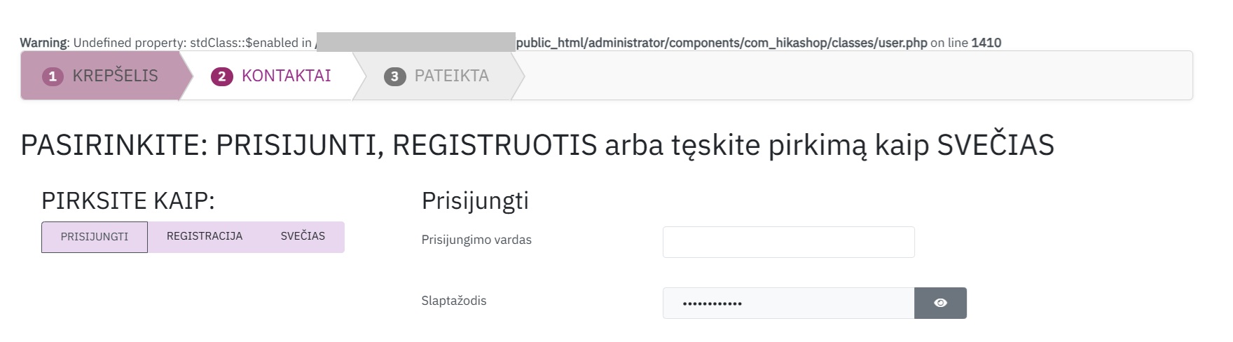 Warning: Undefined property: stdClass::$enabled in ..../public_html/administrator/components/com_hikashop/classes/user.php on line 1410