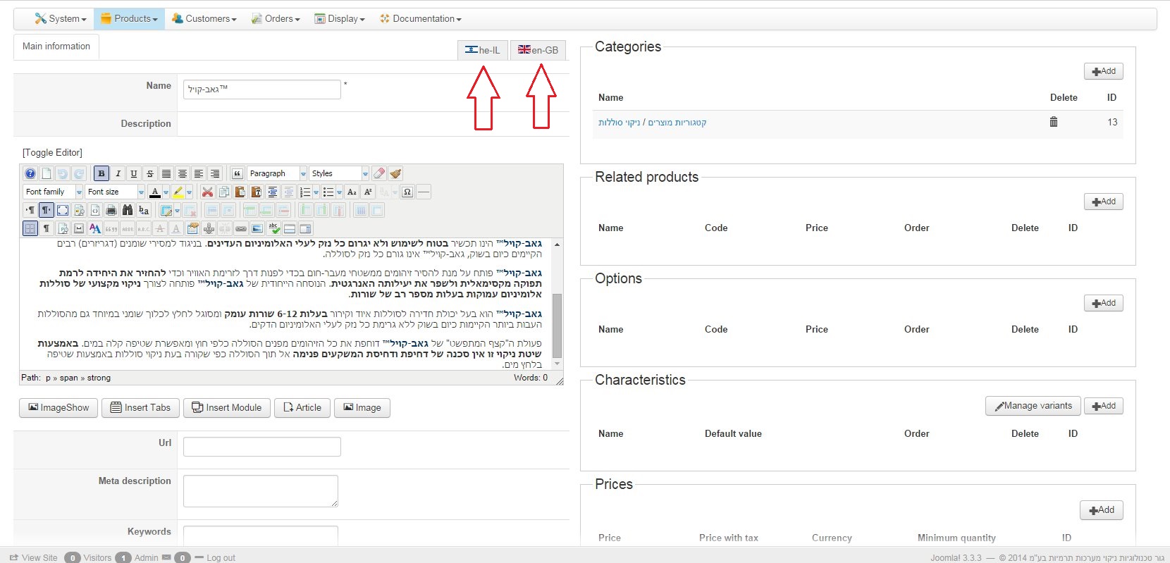 3. Any suggestion regarding this -> BTW, is there an option to add the flags of translation to the custom fields in Hikashop just like in the product description so my client could edit the translations directly from the product?
