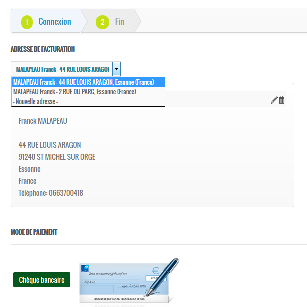 Dans tous les cas, l'utilisateur peut modifier/ajouter une adresse de livraison.