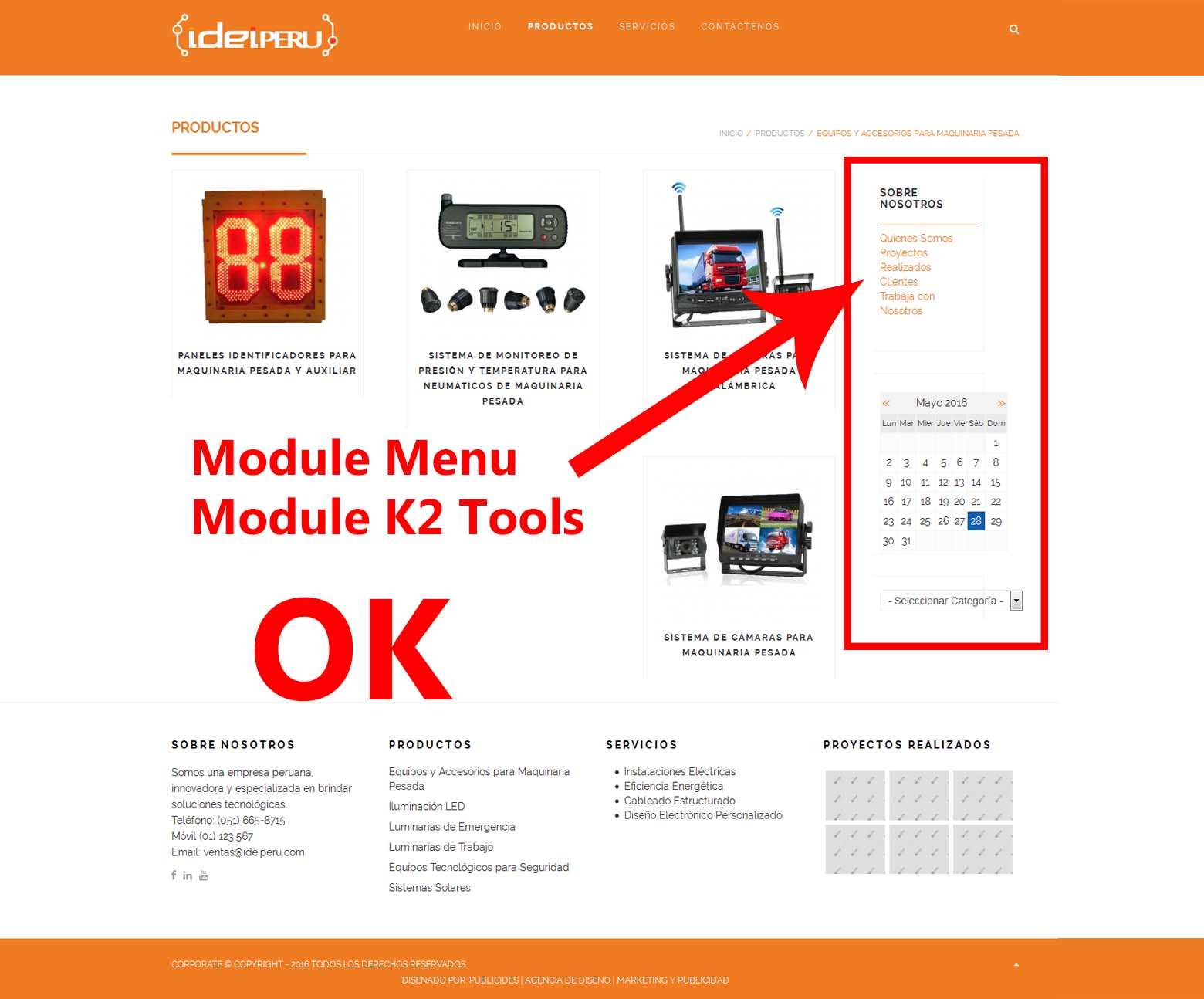 - Module menu, list of categories and K2 Module Tools