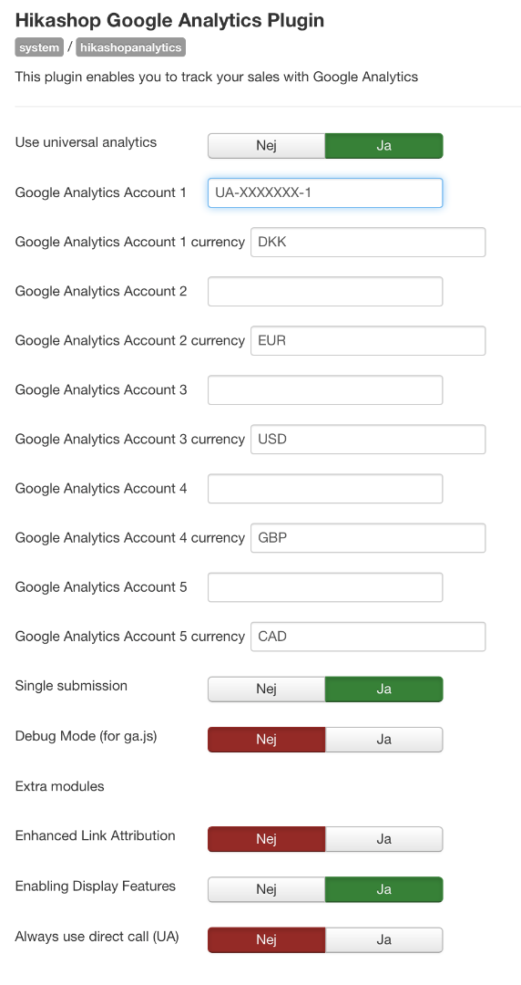 Attached plugin our settings for HikaShop Google Analytics