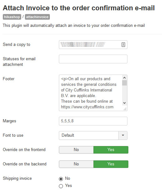 And, yes, the "send a copy to" setting of the plugin is supposed to do the same thing as the BCC setting of the email in the menu System>Emails. It's just that the BCC setting didn't exist when the "send a copy to" setting was added to the plugin and thus you have two ways to set it up.