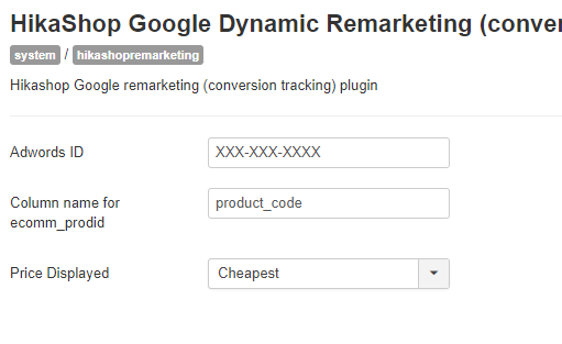 1. hikashop google remarketing plugin