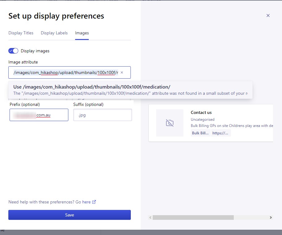 we installed the listed search integration (XT Search for Algolia) to get images in the search suggestions but can figure out how to tell algolia what the image field is. Attached are some pictures of their set-up. Hopefully you can tell us what to enter for the field information. It's quite expensive, so we don't want to keep it if images can't be displayed and they bounce you back to your own tech support for problems (which is me)..