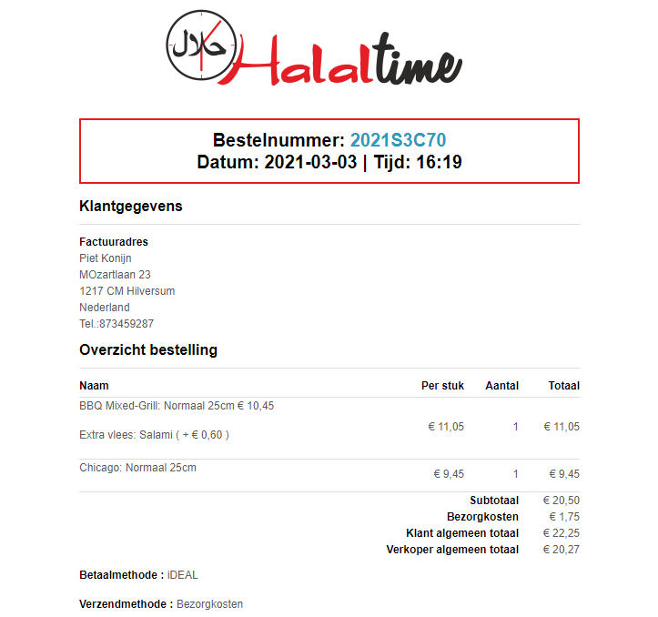 € 22,25 minus € 20,27 = € 1,98 and show this in the email??