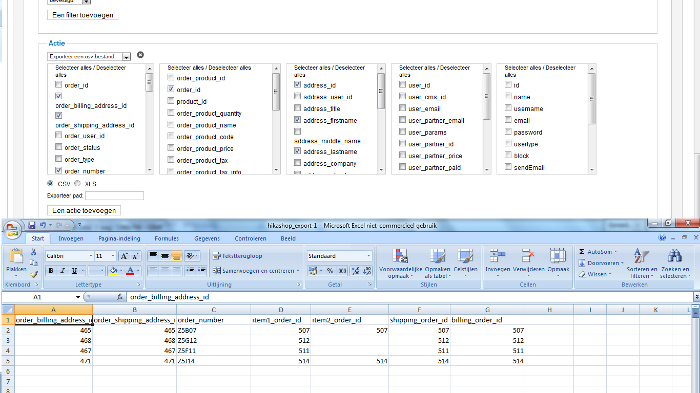 Second and even a bigger problem is that the file is not showing the selected filters. It is just showing the last made order in the file. When i take away the absolute pad and just download the csv file myself it is showing the orders according to the filters. Wich can be many orders at the same time. Because we put it on showing all confirmend orders and not just the last one. Its even showing orders that are made but not confirmend..