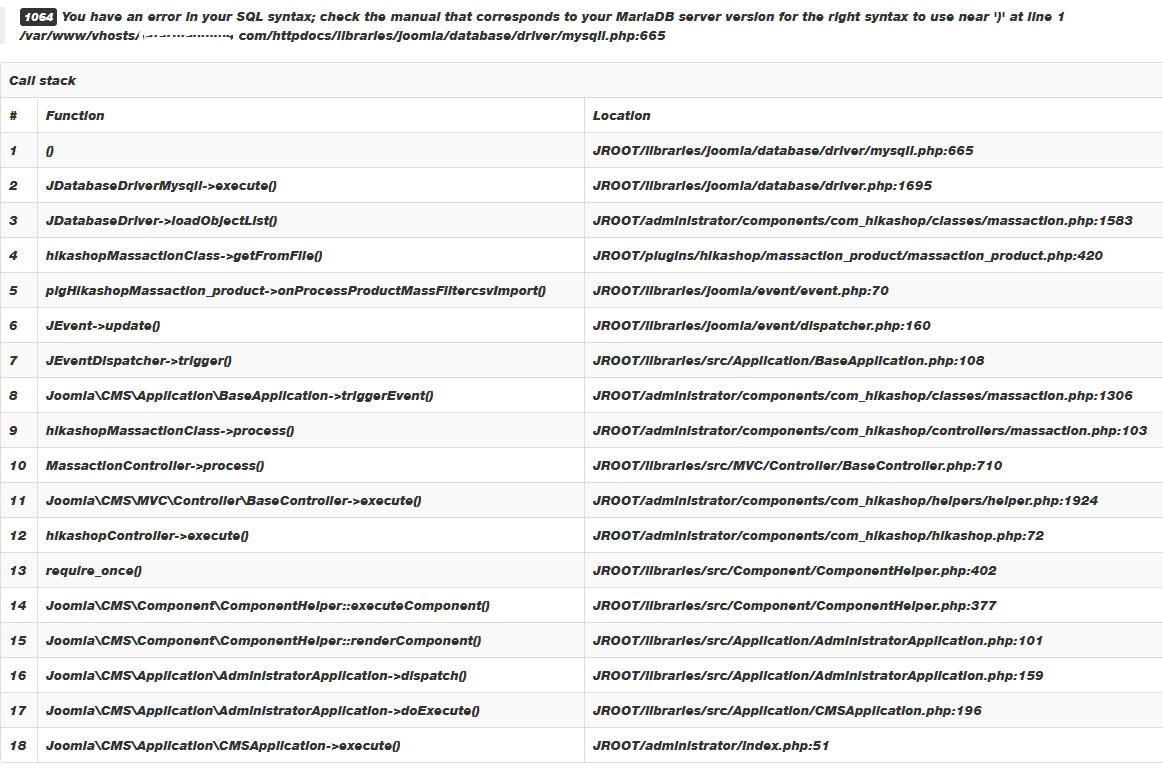 /var/www/vhosts/.../httpdocs/libraries/joomla/database/driver/mysqli.php:665