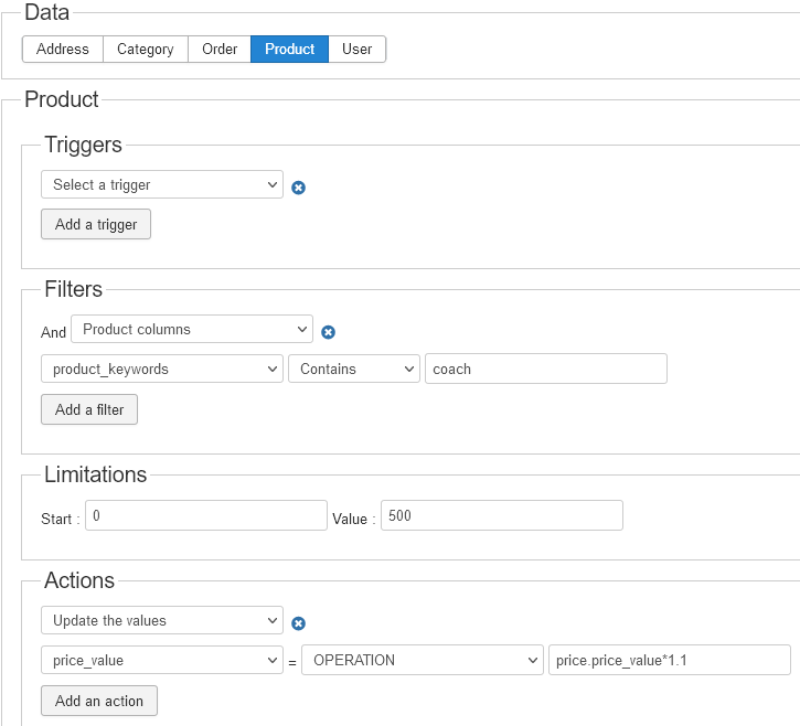 UPDATE #__hikashop_price AS price SET price.price_value = price.price_value*1.1 WHERE price.price_product_id IN (SELECT product_id FROM #__hikashop_product WHERE product_manufacturer_id = 75);