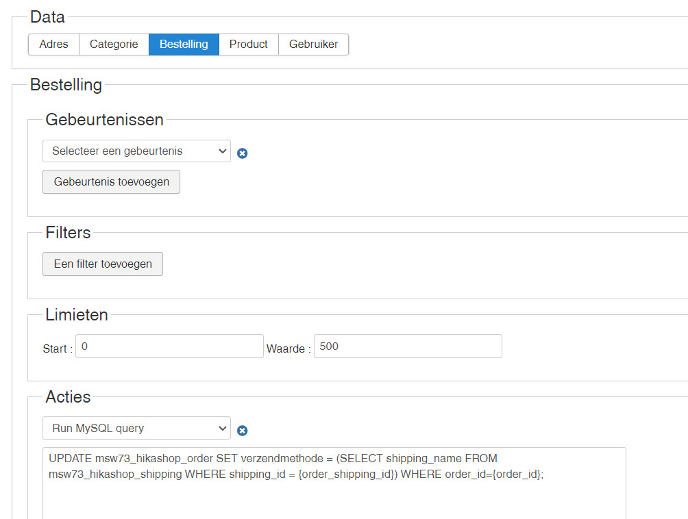 UPDATE #__hikashop_order SET verzendmethode = (SELECT shipping_name FROM #__hikashop_shipping WHERE shipping_id = {order_shipping_id}) WHERE order_id={order_id};