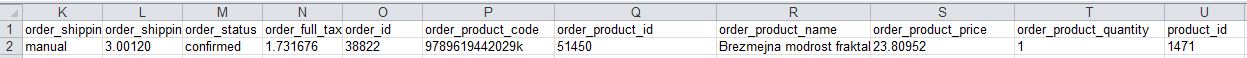 When you export an order without any products, the first one will have the id of the order while the second one will be empty.
