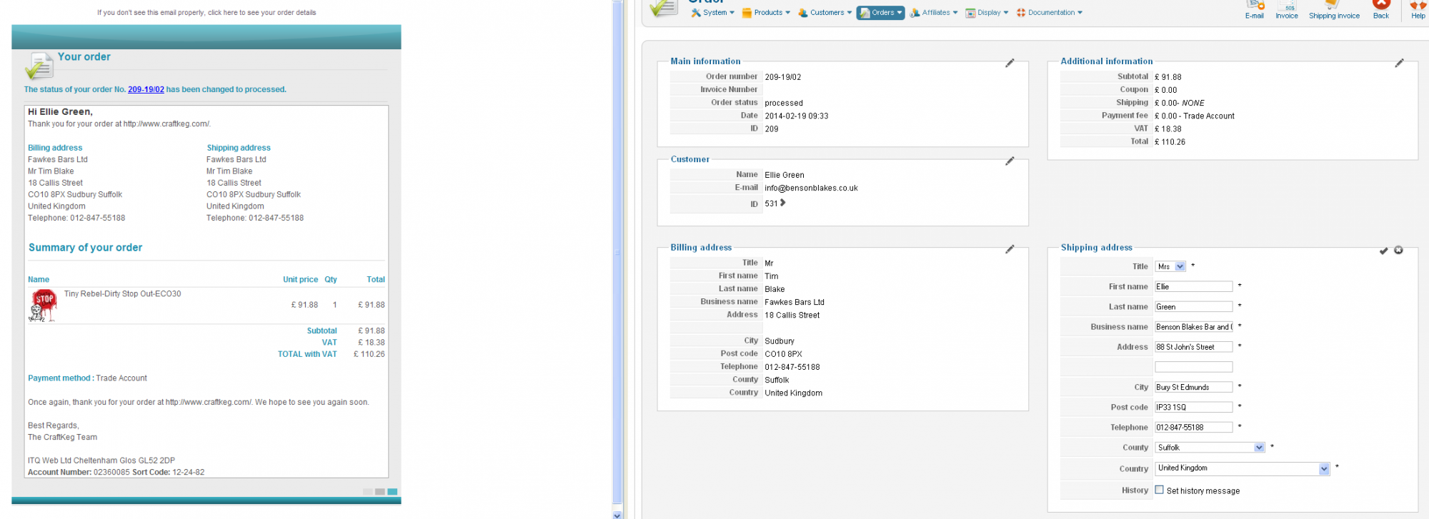When I'm dealing with an order in the back end, if I try and send out the confirmation email out to a customer again it fills in the Billing and Shipping address as the same, even when the Shipping address is different.