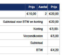 Hi, I use the the invoice PDF plugin. My client wants to have the calculations more specific and I must say there is some improvement possible (it took me a while to understand the invoice myself).