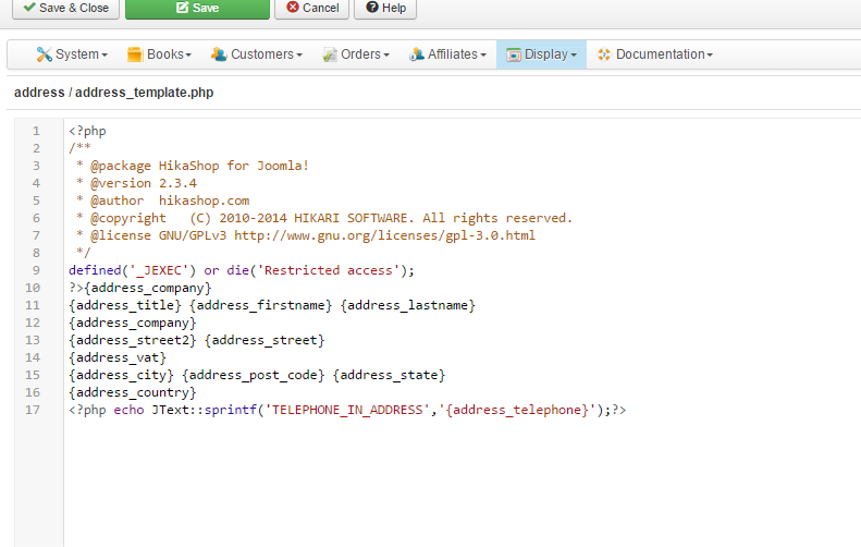 2) As you mentioned, I didn't find the address_template view for the backend, but here is the code I modified for front_end of my current template.
