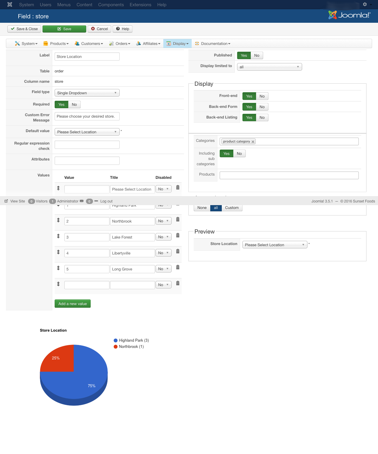We've tried to implement this, but the bcc emails are not being generated. We have a custom field single selection drop down with the name 'store'. The values of the drop down options are 1 through 5 and the titles are the name of the stores (eg. Highland Park).