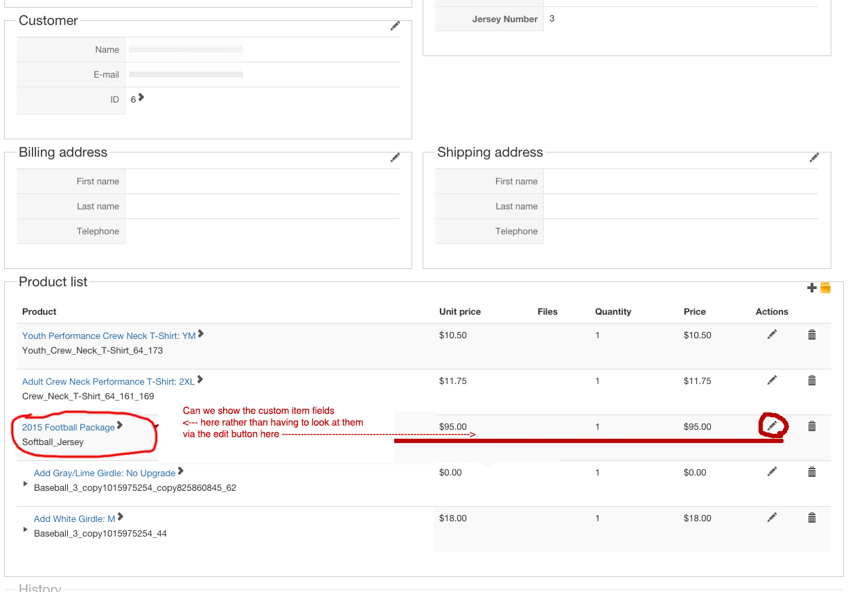 I have custom fields for different sizes on a product that is set to "Group options with product". The email that goes out shows the custom fields fine, but the orders on the back end do not show the fields chosen unless I click the edit order button. Is there a way to show them so that it's easier when processing the orders?