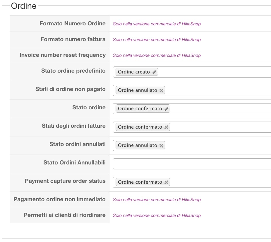 Hallo, it seems to me that in my orders control panel , missing just the voice PAYMENT ORDER STATUS CONFIRMED . And ' one of my HIKASHOP version or problem ??