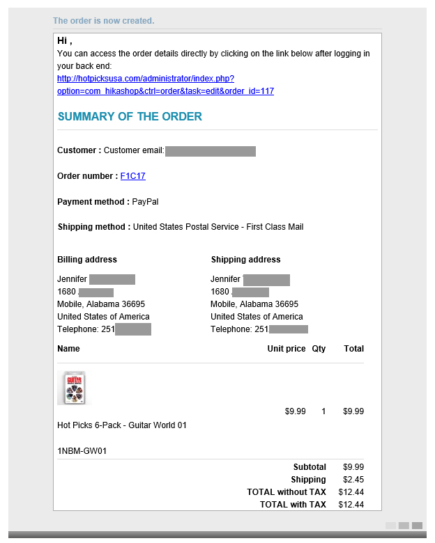 Is there any way to change the default order E-Mail send to the Admin to be the Invoice as it looks like from the order page in HikaShop? We need the email to contain every aspect of the order - Name, Address, items ordered, payment method and total, etc - in one email - with things easily copy-able to past into other things.