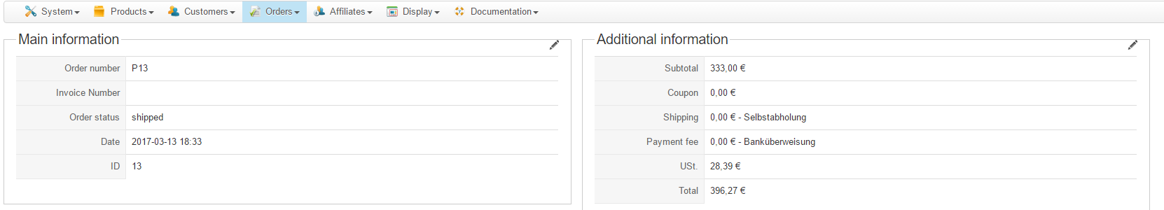 Before editing the order, the tax (Ust.) was correct (63,27 €), but after making changes, it became 28,39 €.