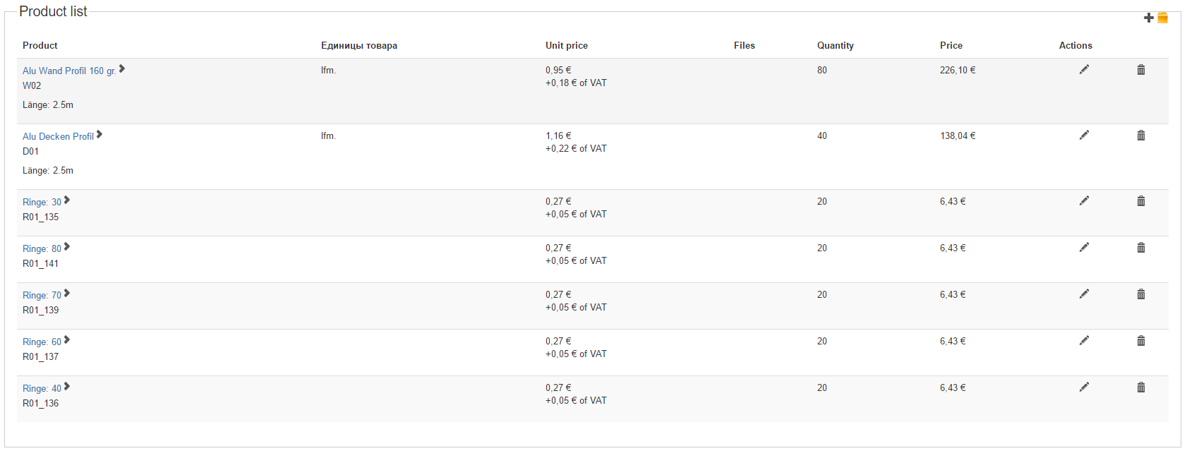 Alu Wand Profil 160 gr. price Is calculated as follows: 0.95*80*2.5m=190 and 226.1 with tax (19%)