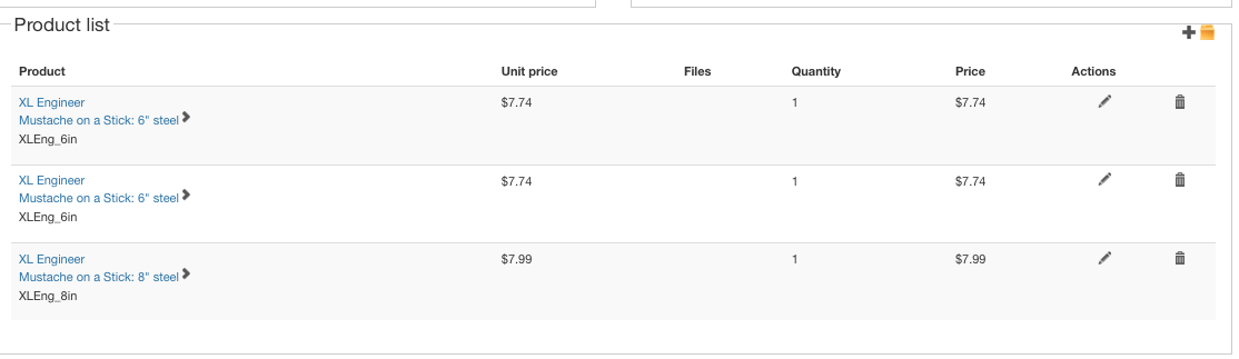 This is what it looks like when I click to edit the order: