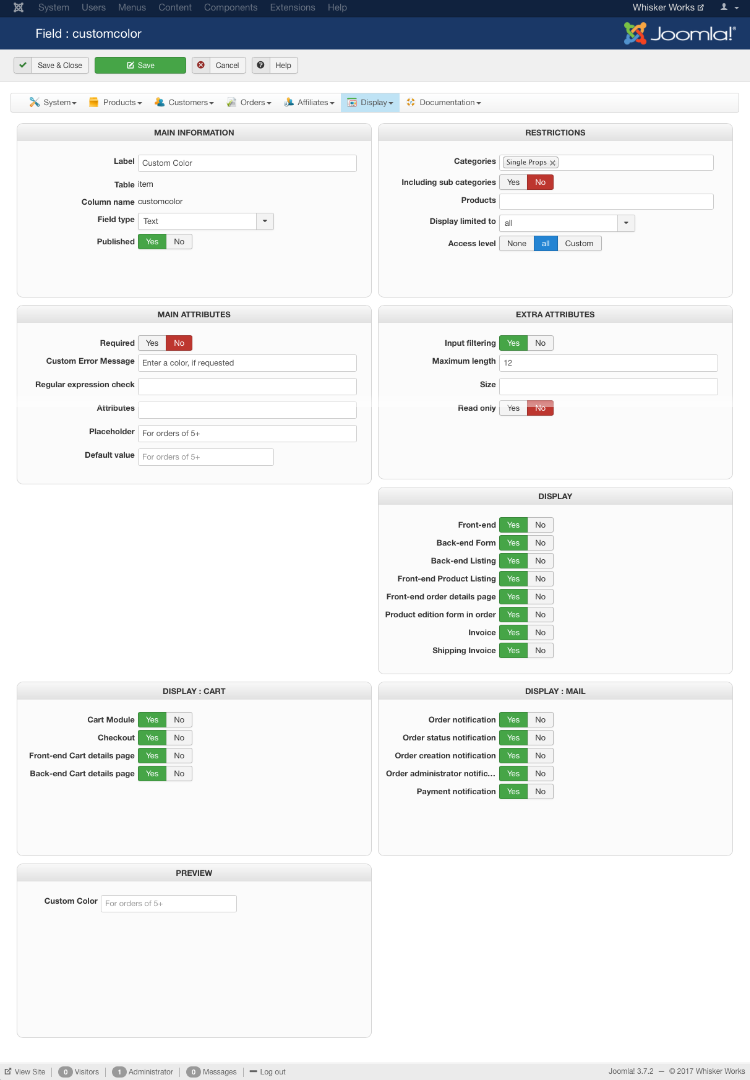 How can I get the field to be recorded in the back end, and show in the emails?