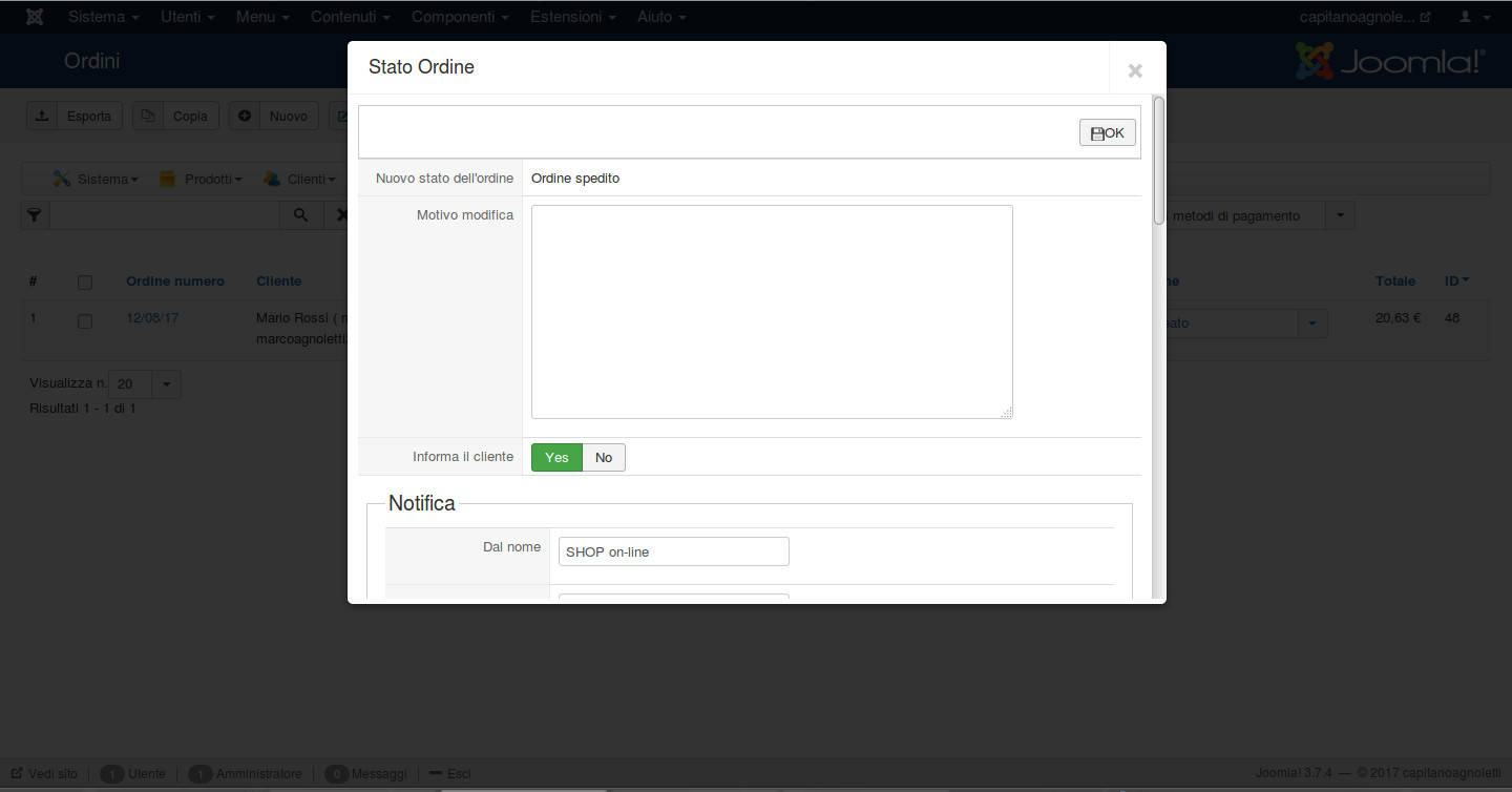 1. If I modify the order directly in the order details page and not in the order listing, then the notification e-mail is received regularly (subject and text).