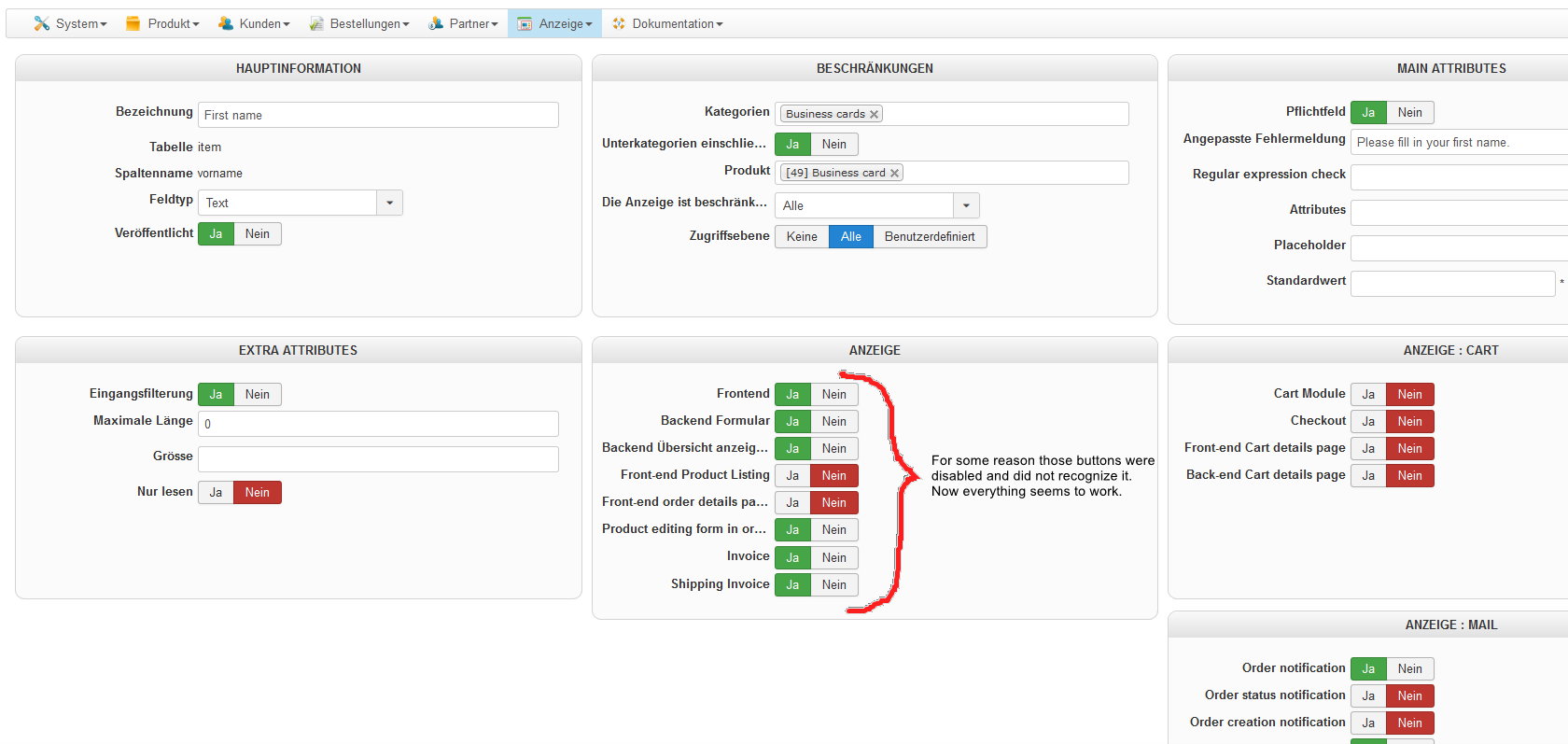 I can fill them in the front end, but they are not shown anymore on the delivery notes, emails and invoices in the backend.