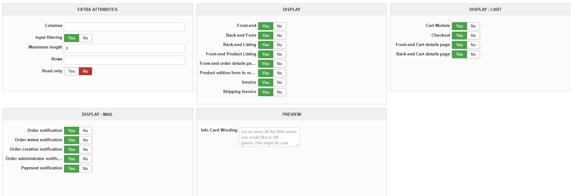 Hi, from the product page above, the user can add information like Wedding Words, Colour, Title etc. These are type: Item and Text area boxes
