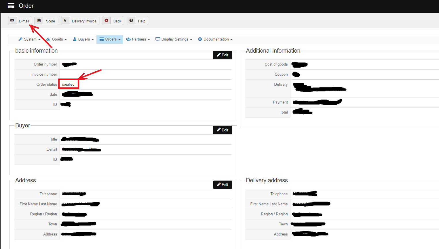 Then, you need to know that when you change the status of an order in the backend and check the checkbox to notify the customer (or if you use the "email" button of the order edition page), if the order status of the order is enabled in the "unpaid" column of the System>Order statuses menu, then a payment link will be automatically added to the notification email so that the customer can just click on that link.
