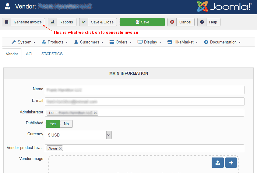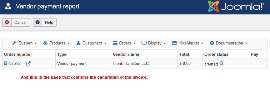 Now the vendor receives payment from customer to his bank account and confirms payment. So the site will create the invoice for the commission that the vendor has to pay to the site. So we go to