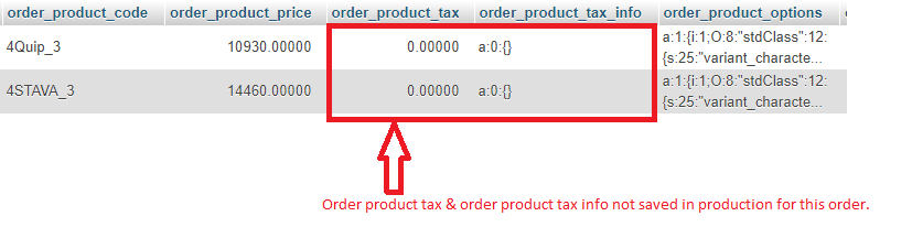 Today one more order created with same issue. Order product tax and order product tax info is not stored in the table.