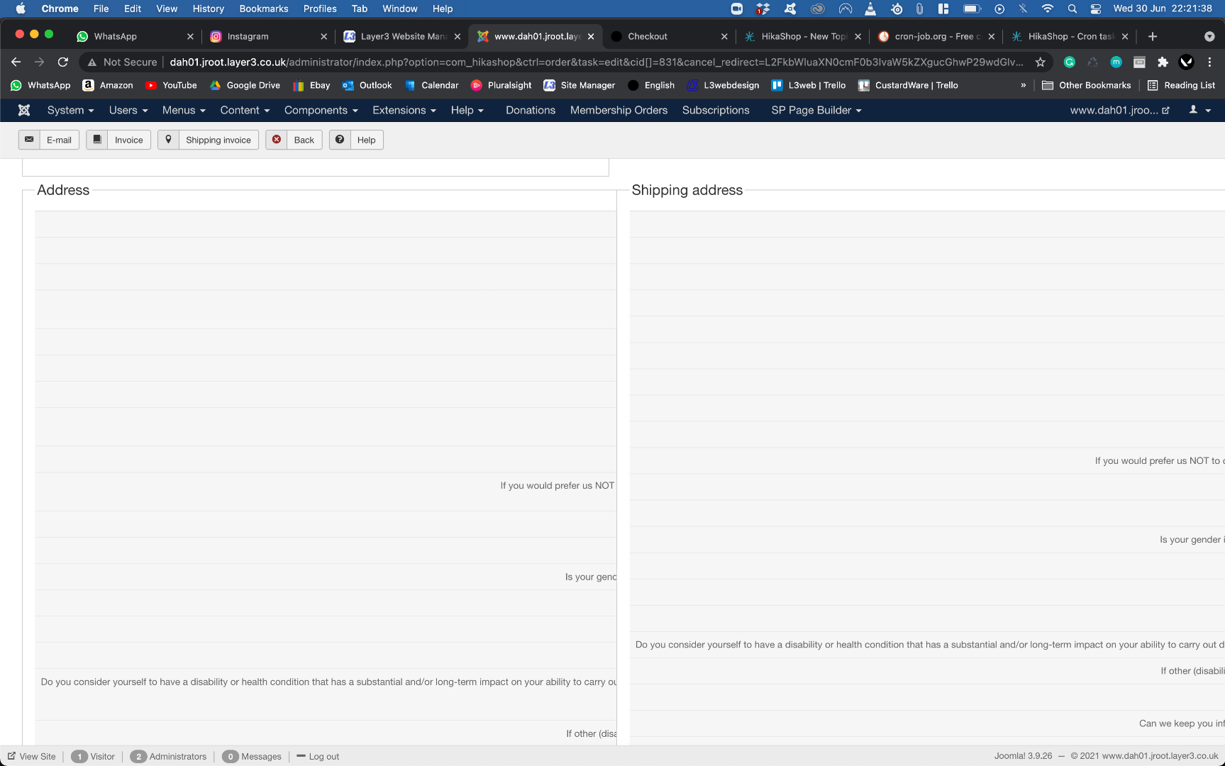 To remove the shipping address area, you would have to edit the file order/show.php for your backend template via the menu Display>Views.