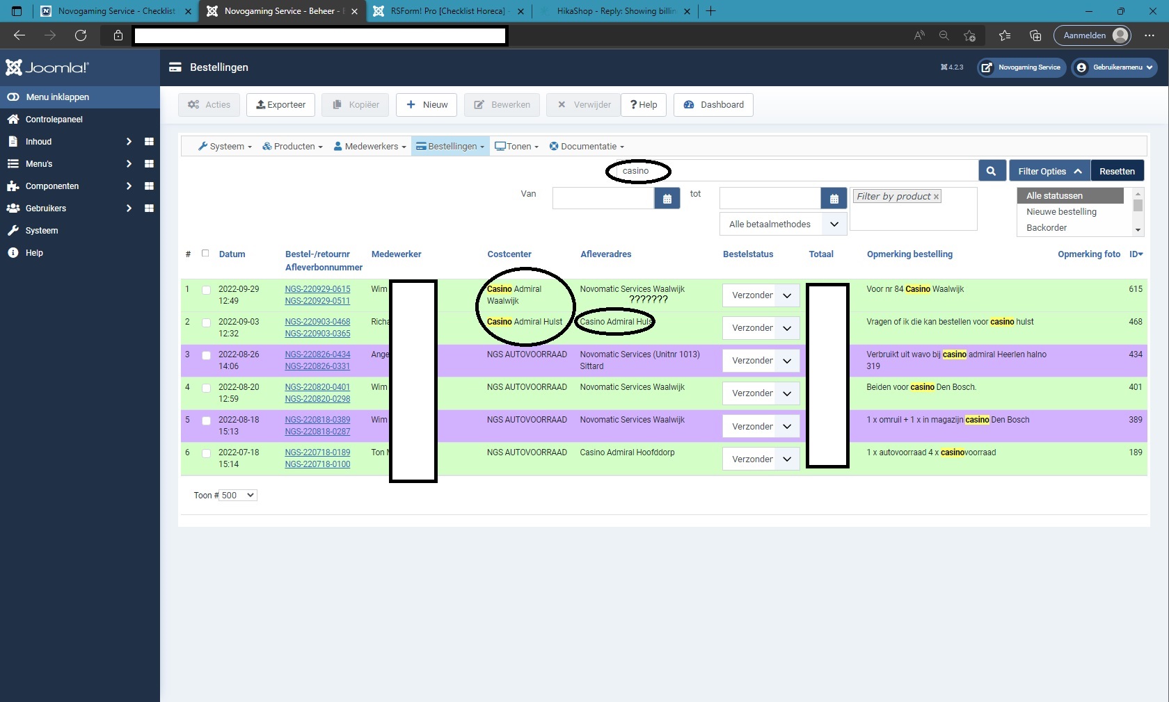 $searchMap = array('c.id','c.username','c.name','a.user_email','b.order_user_id','b.order_number','b.order_id','b.order_invoice_number','b.order_invoice_id','b.order_full_price','d.address_firstname','d.address_lastname', 'b.order_discount_code');It would potentially be possible to search on more fields of the billing address by adding them to that code. But for the shipping address, it's not possible as the shipping address is not part of the MySQL query loading the orders on the page, as I was explaining in my first message on this thread.