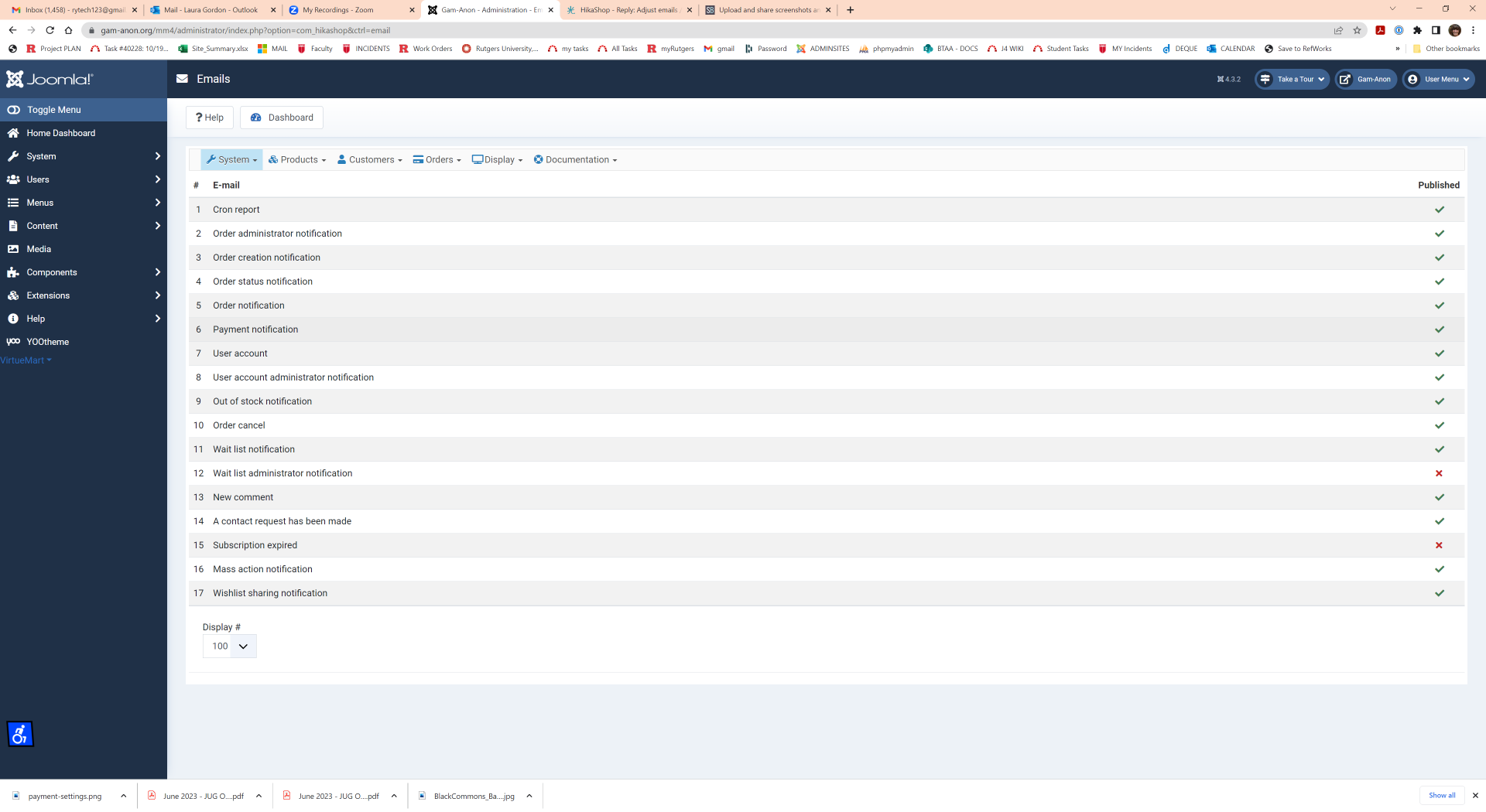 2. There is. As I said above, after a payment is made for an order, you should receive the "payment notification" email from HikaShop.