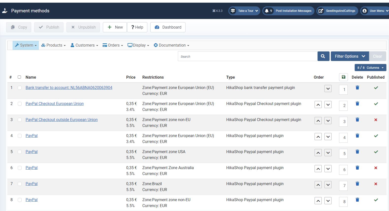 the details of how you configured your tax rules, your shipping fees, your payment fees, and tax settings in the HikaShop configuration