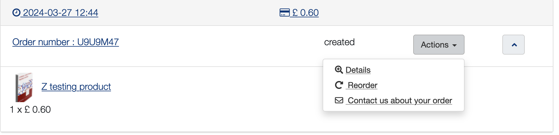 Problem is I've got "Payment of orders not paid immediately" switched to "Yes", but when I go to "My Orders" I'm not seeing an option to Pay - should this appear under the "Actions" dropdown?