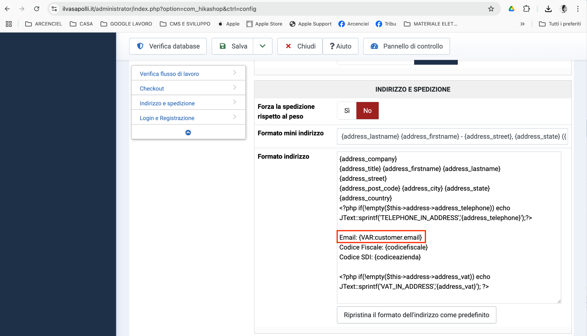 You can't use that tag in the address format setting.