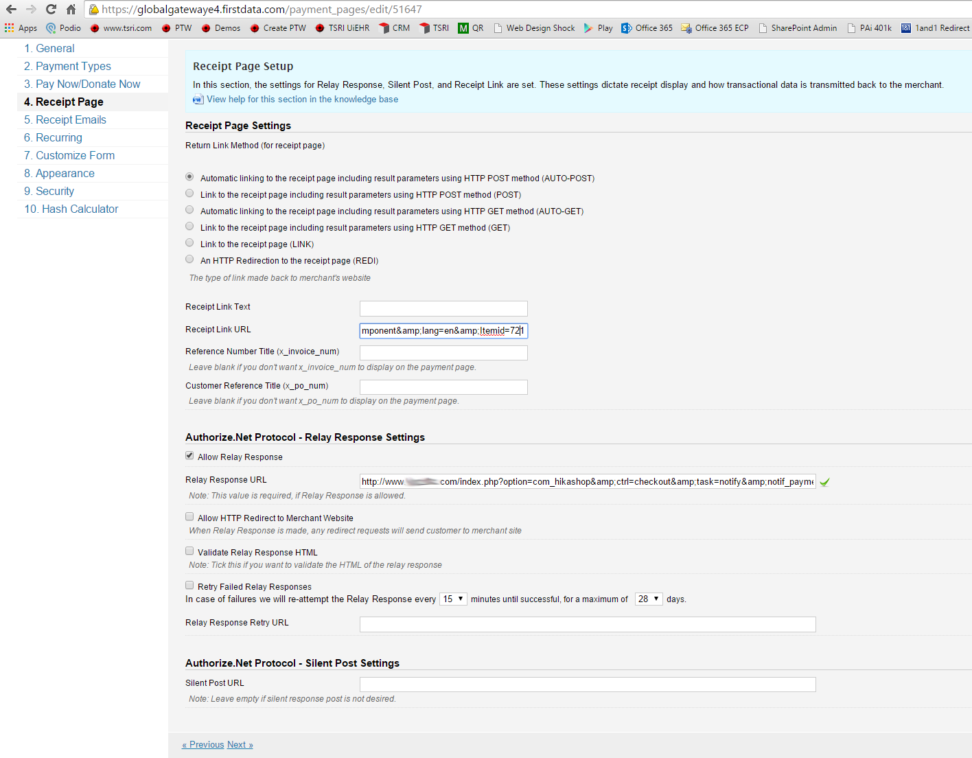 I've reviewed my FirstData setup and other than the Relay Response URL I've already mentioned above, everything looks the same.