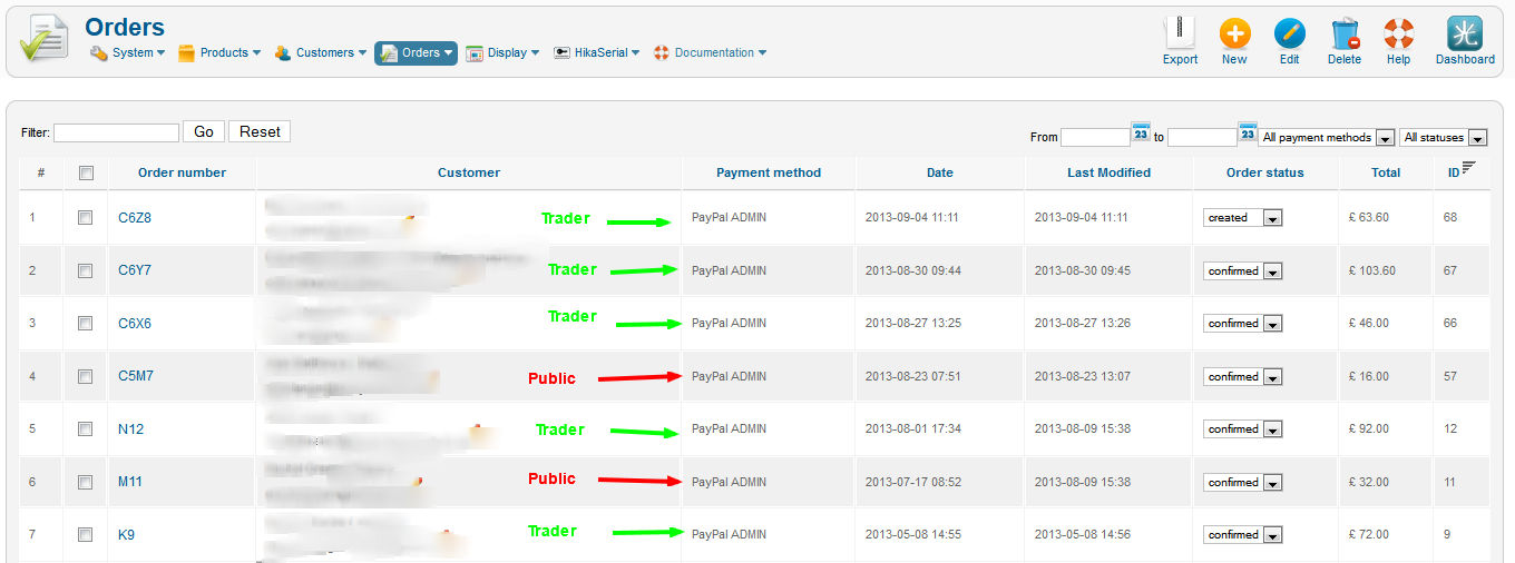 When any order is placed in my shop, no matter where it is from (public or trader) - on the Orders screen it Always shows up as the last payment option that I created - in this case Paypal ADMIN.
